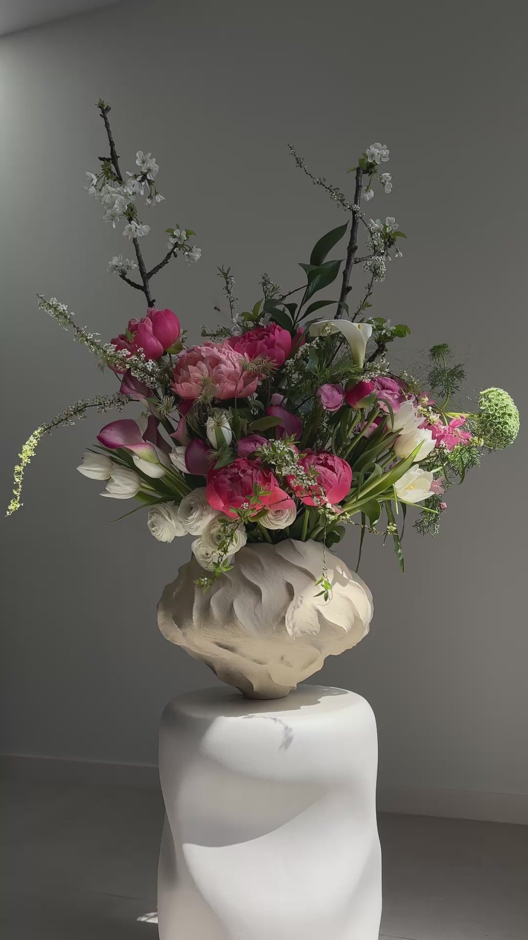 These aren’t mere bouquets, they’re intentional transformations. Wild allium becomes architectural drama. Peonies turn tables into still-life paintings. Lathyrus vines redraw your walls with shadow and grace.